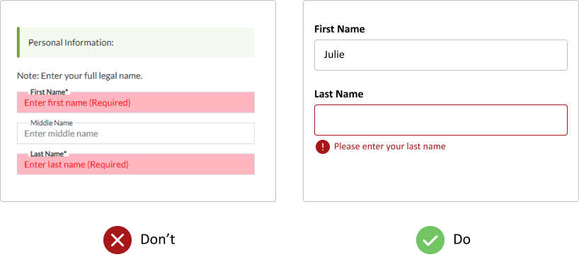 We reduced on-screen text to improve readability and placed clear, specific error messages directly beneath each form field. Previously, vague messaging and poor placement left users confused and unsure how to fix input errors.