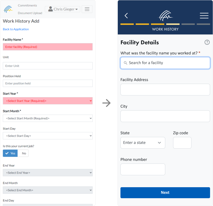 Transforming healthcare staffing with a user-friendly application process.